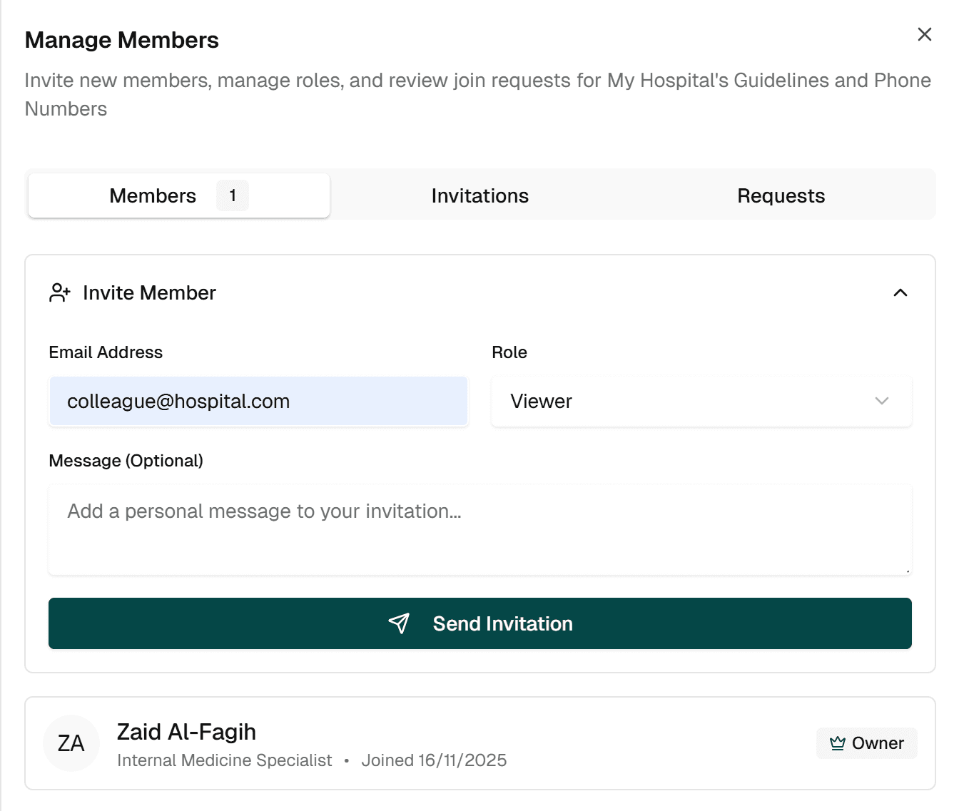 Create distinct "Spaces" for different teams (e.g., ED, Oncology, Admin) with granular permissions.
